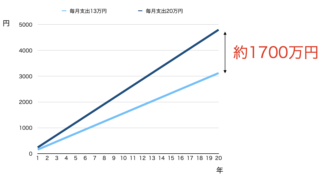 20年後には大体1700万円ほどの違いになります。老後2000万円問題も解決できそうですね!
